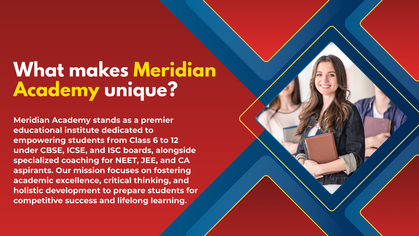Learning at Meridian Academy is special due to its blend of expert-led coaching, cutting-edge support tools, and personalized resources tailored for NEET, JEE, CA, and Classes 6-12 successfully.